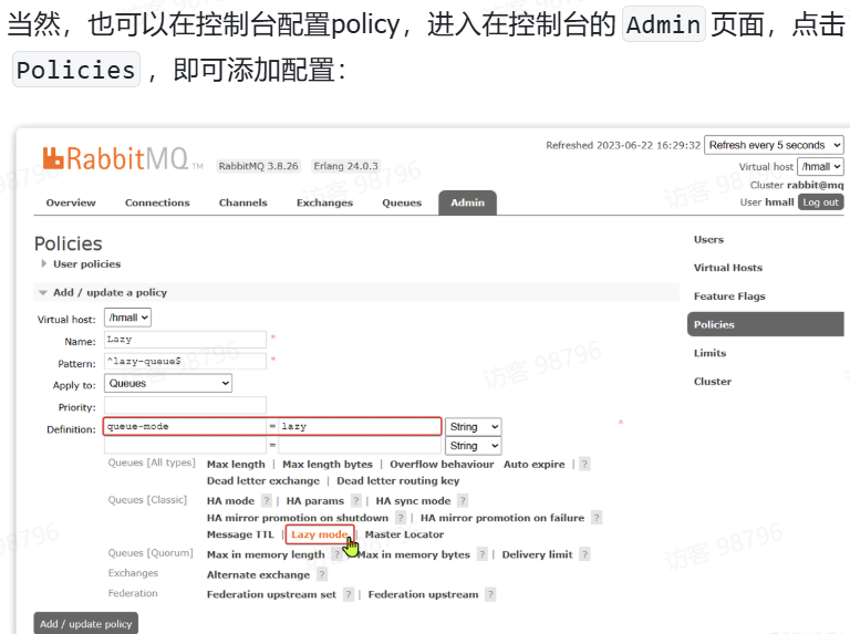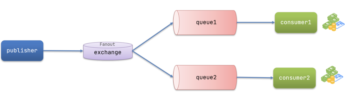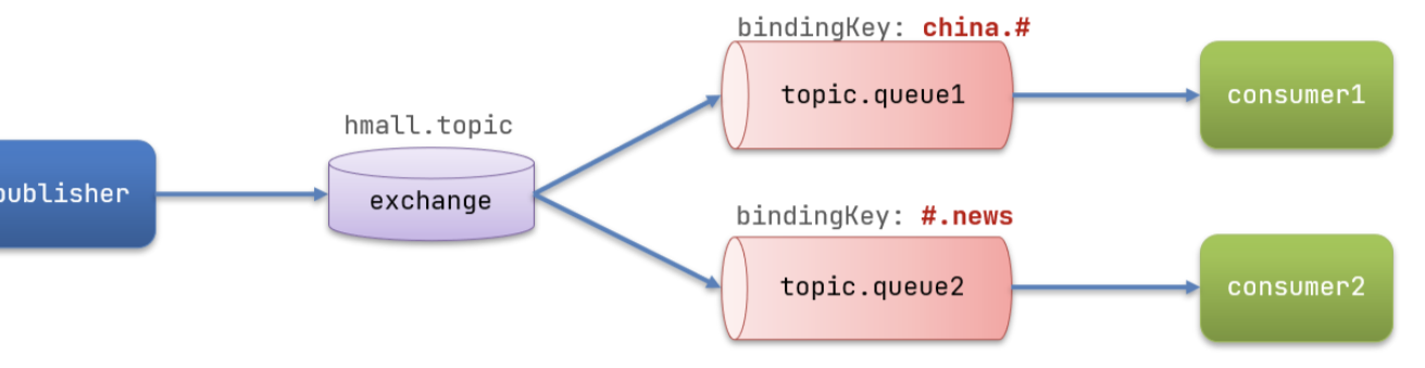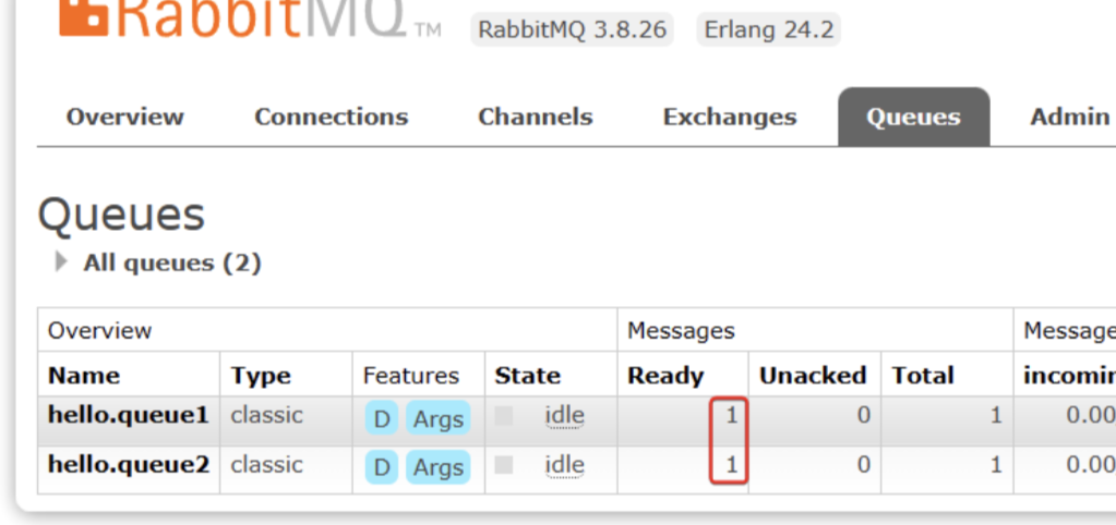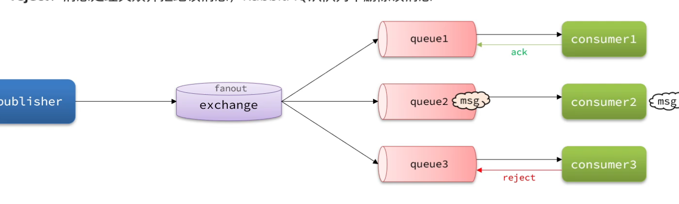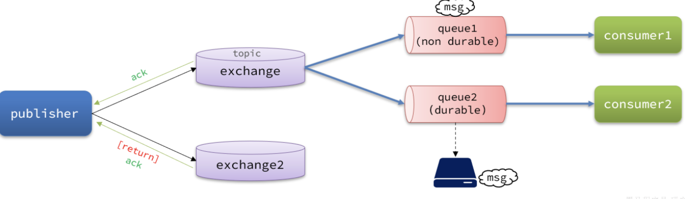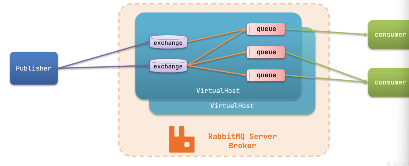 queue:队列,存储消息。生产者投递的消息会暂存在消息队列中,等待消费者处理 -