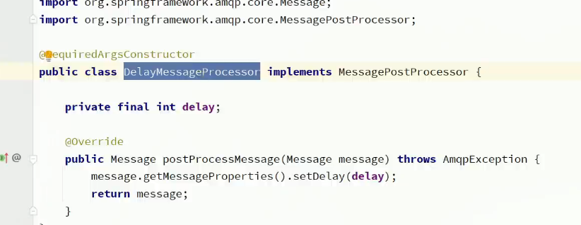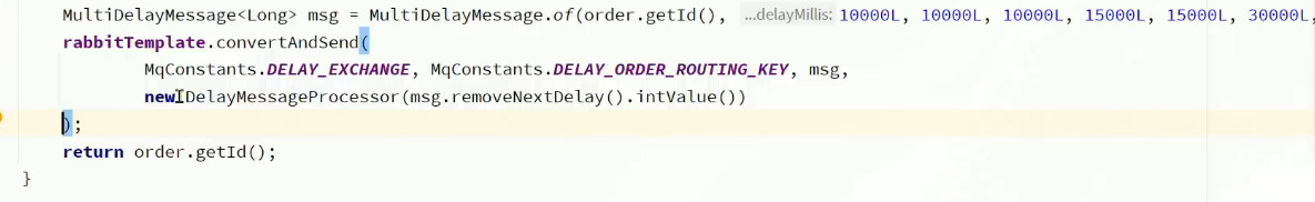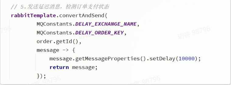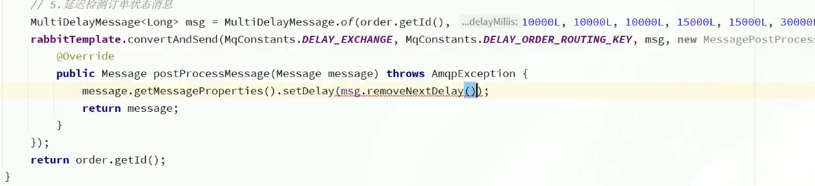 rabbitTemplate.convertAndSend("delay.direct", "delay", message, new MessagePostProcessor() {