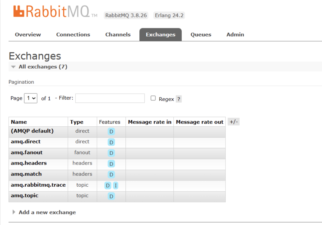 我们打开Exchanges选项卡,可以看到已经存在很多交换机