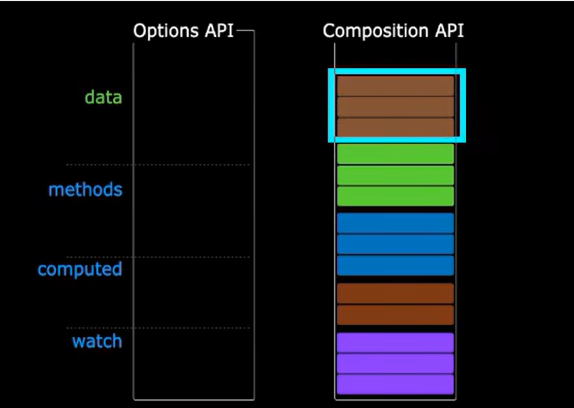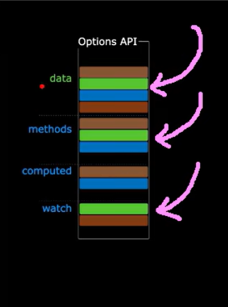 使用传统的OptionsAPI中,新增或者修改一个需求,就需要分别在data,methods,computed中修改