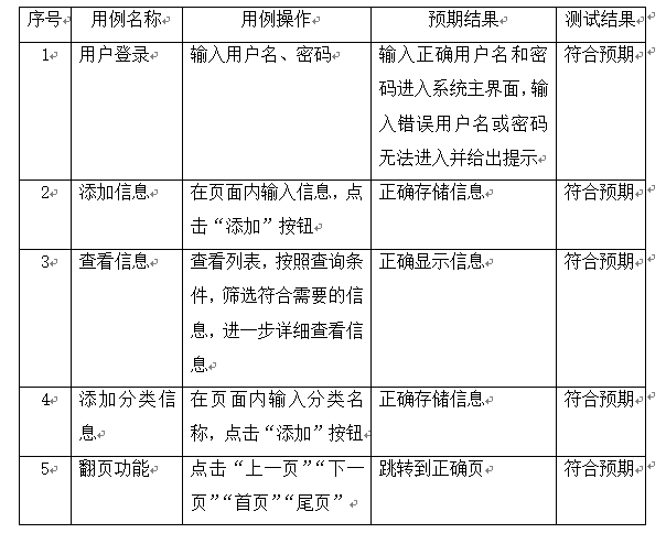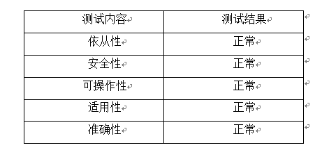 功能测试主要包括五项内容,分别是适用性,准确性,可操作性,依从性和安全性。系统的功能测试表如下所示: