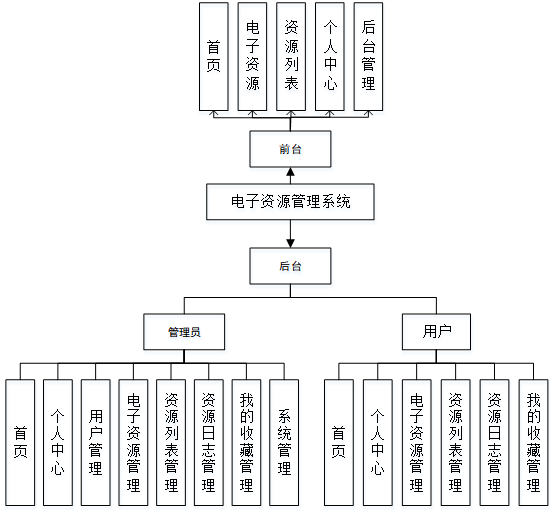 根据一般电子资源管理管理系统的功能需求分析,本系统的功能模块如下: