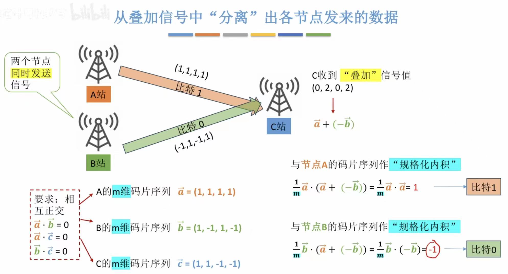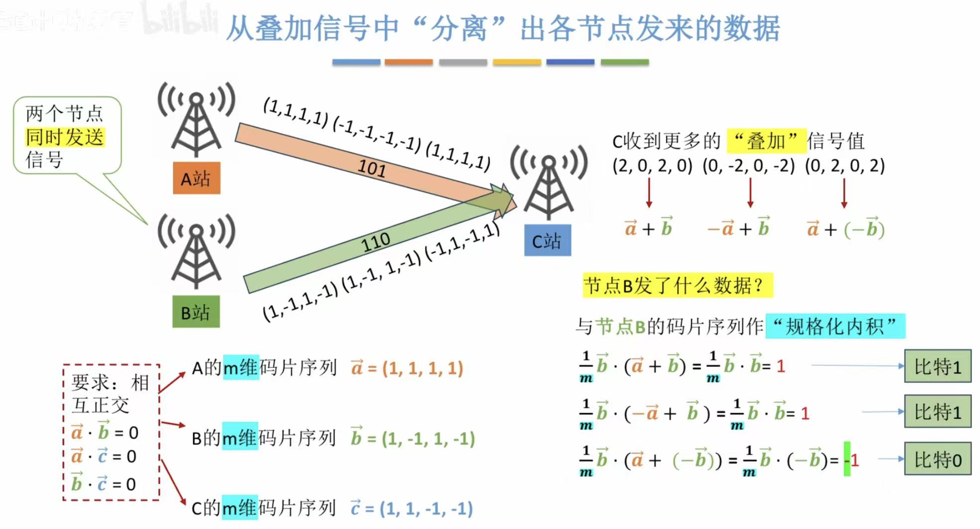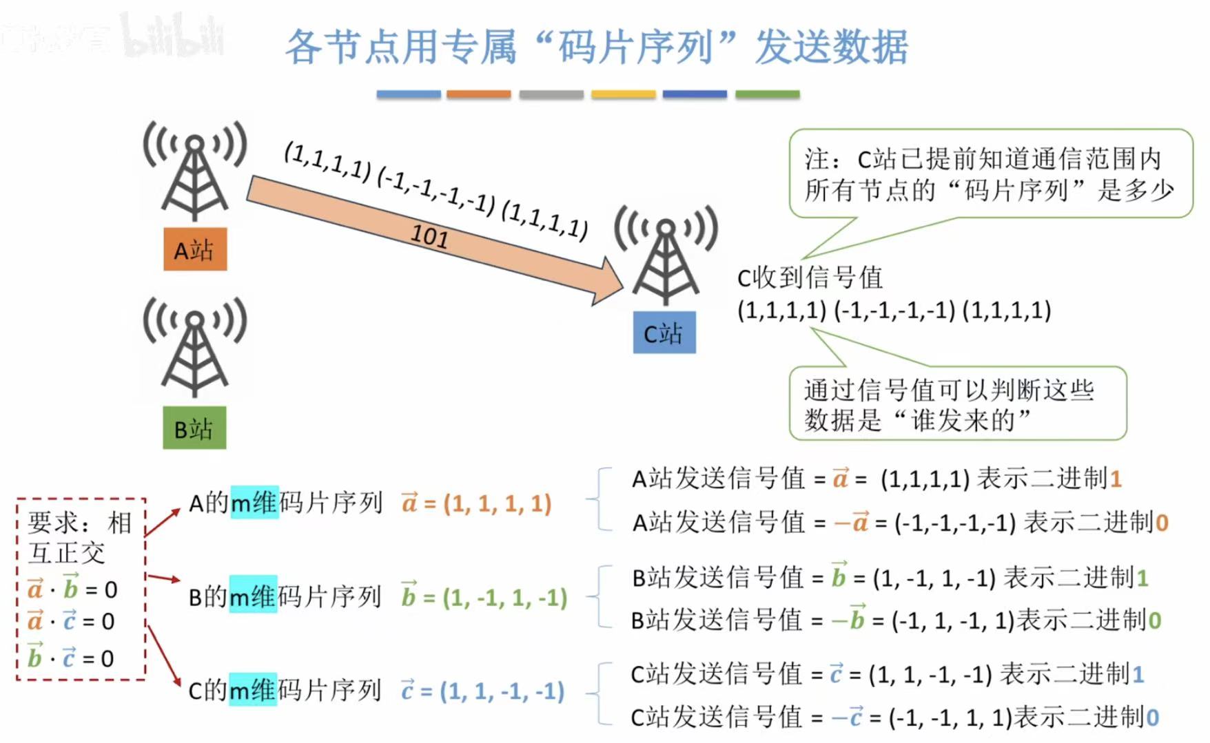 很轻易地就能计算出A站发的信号量是什么。