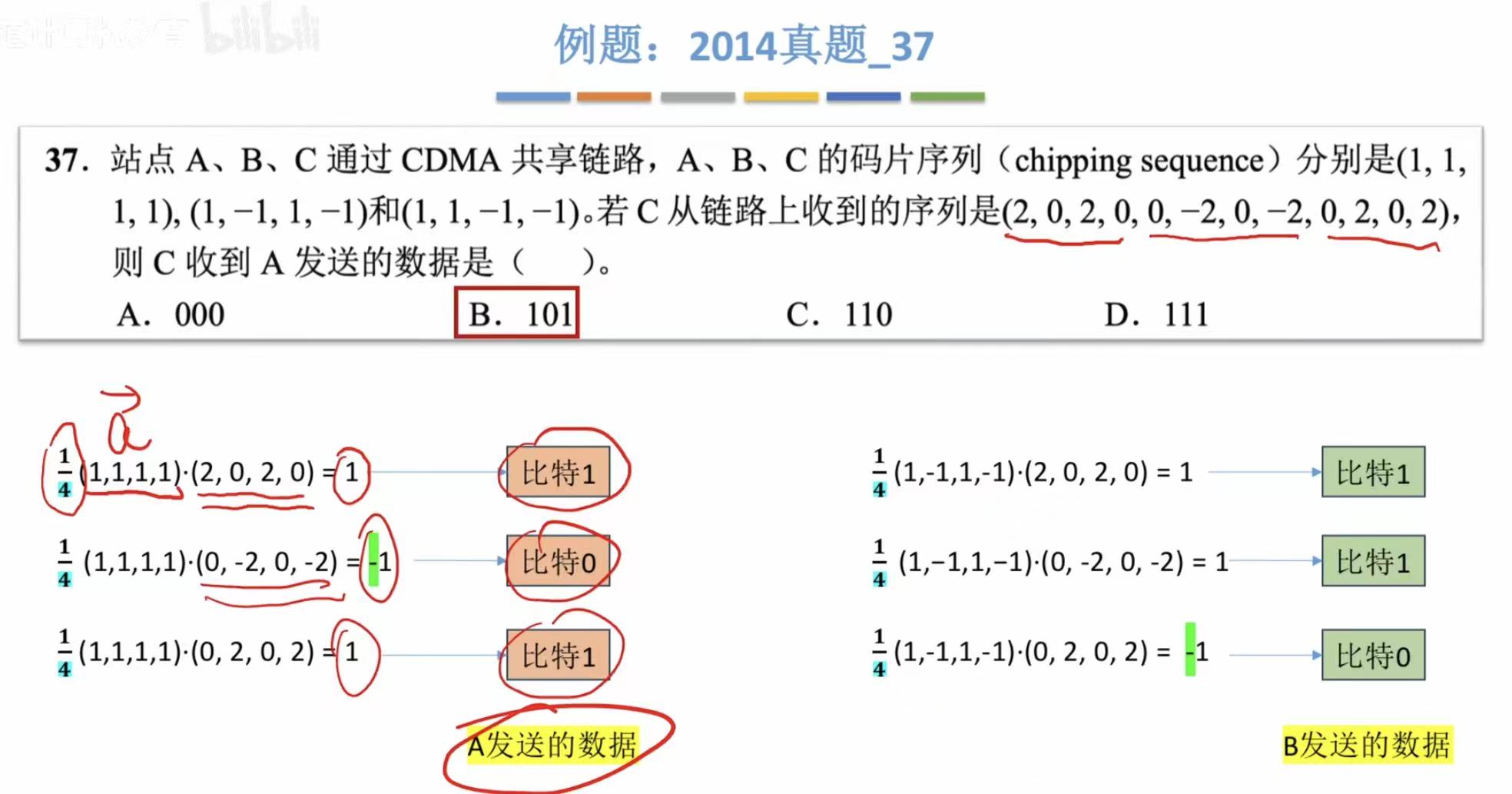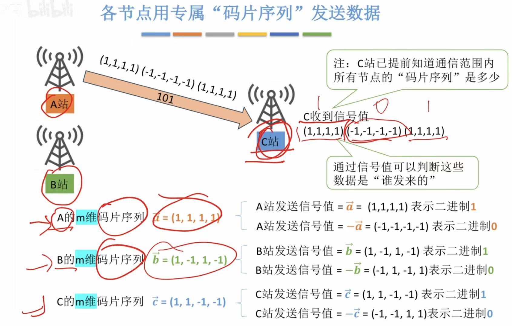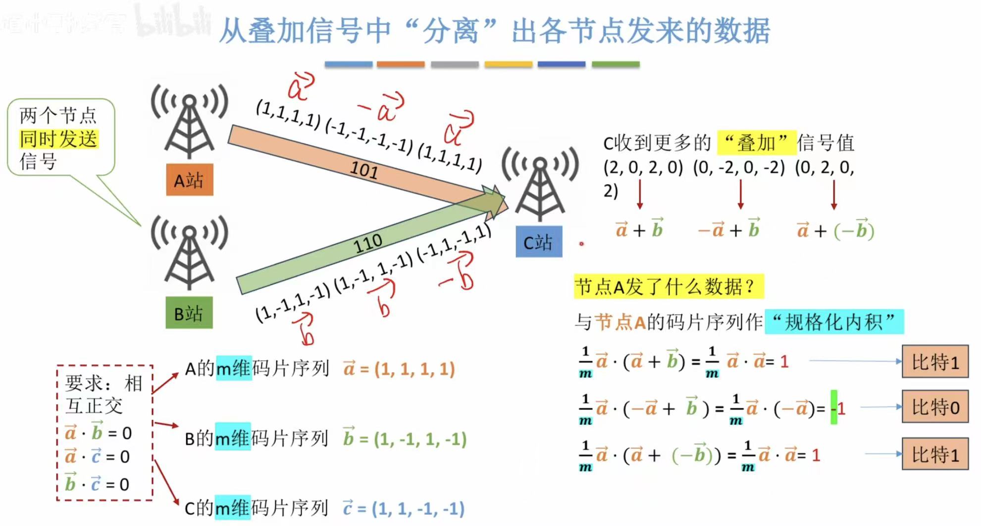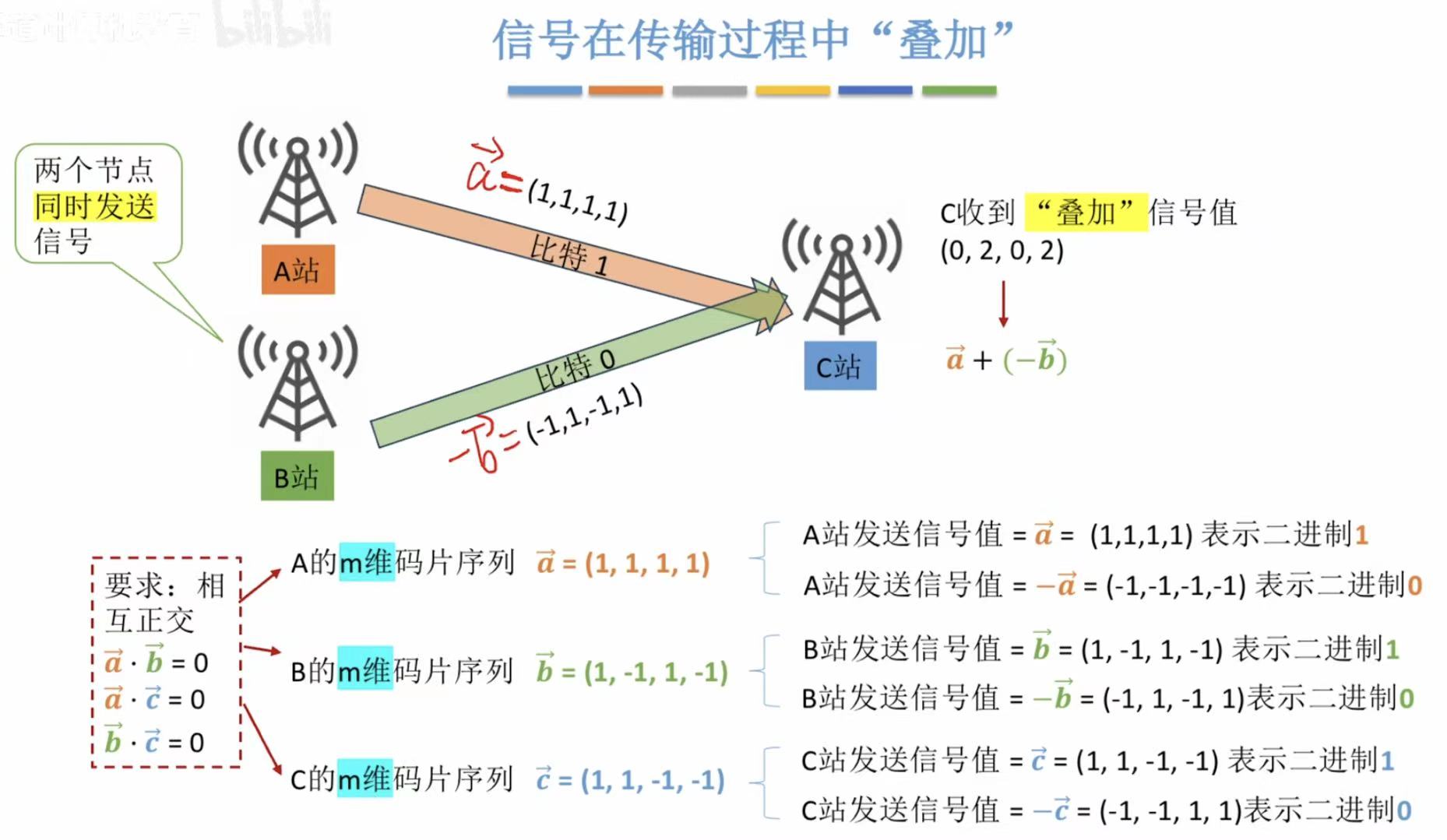 很轻易地就能计算出A站发的信号量是什么。