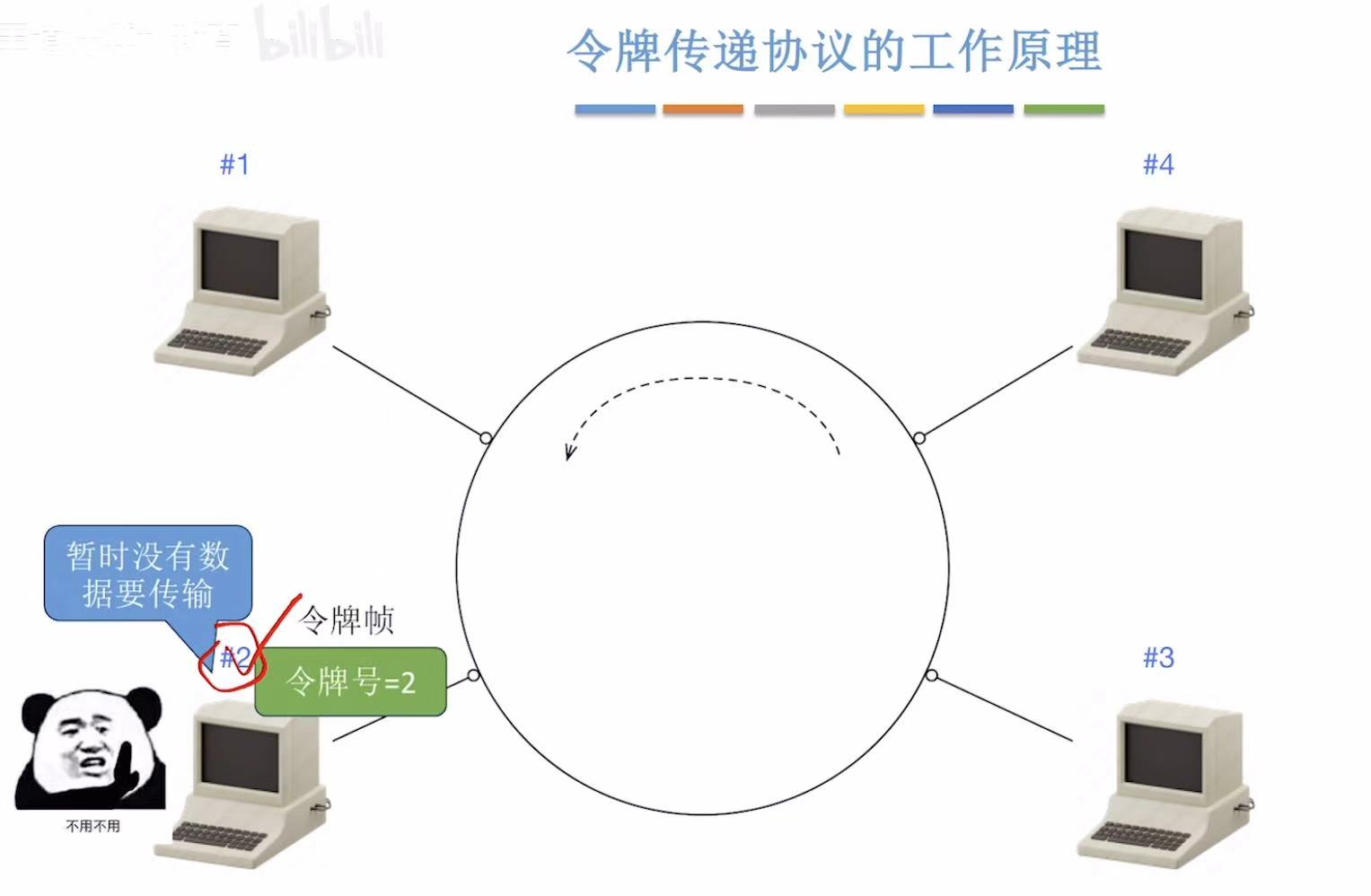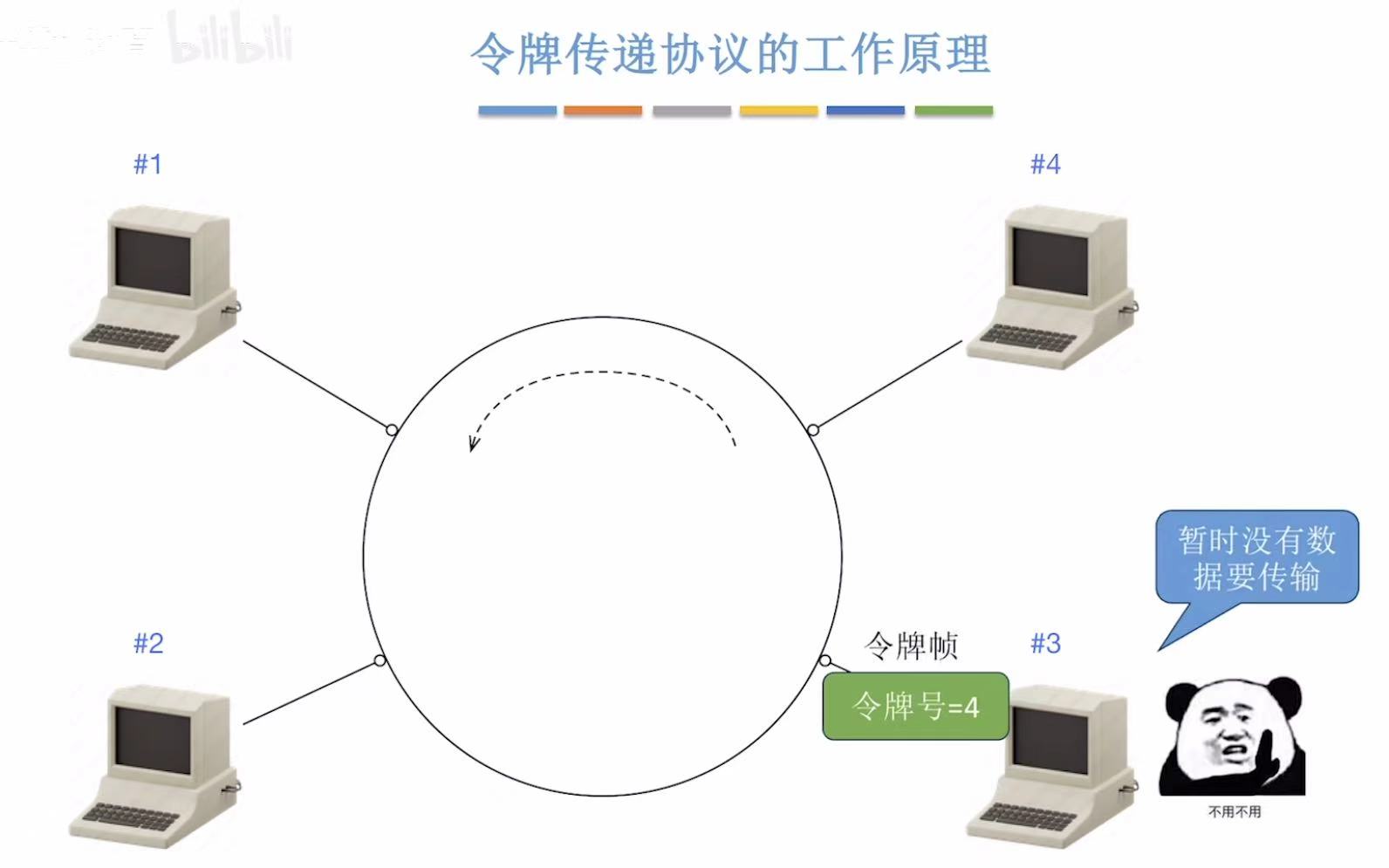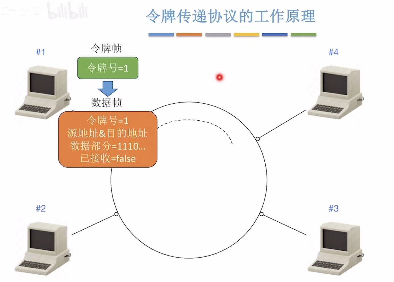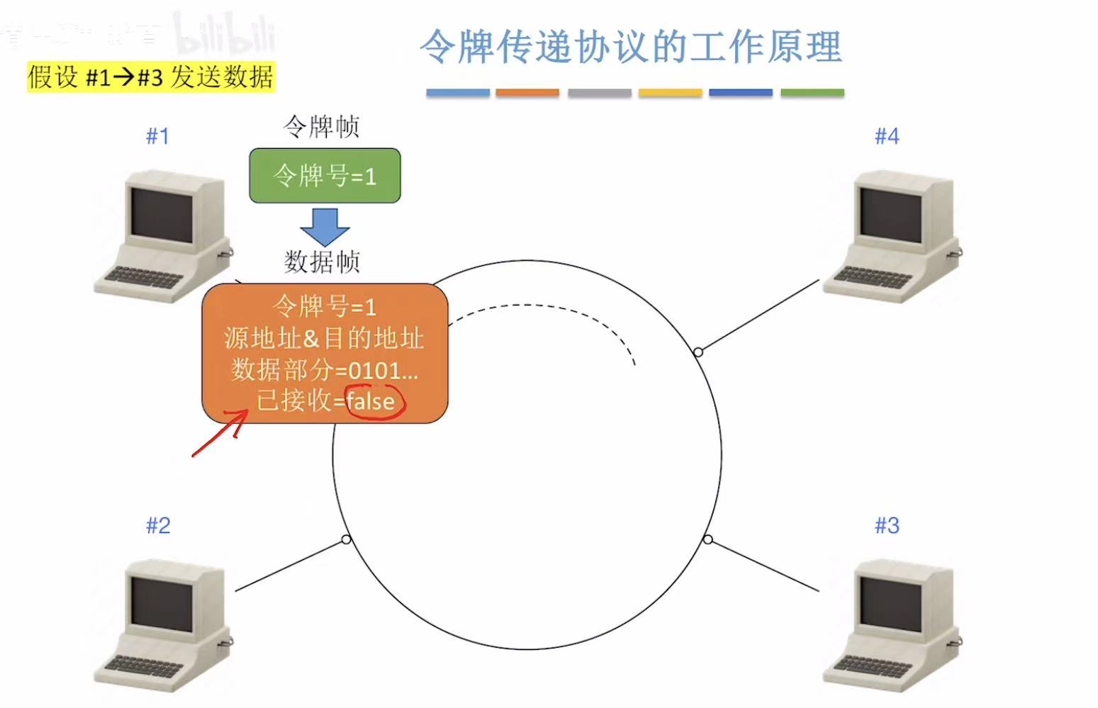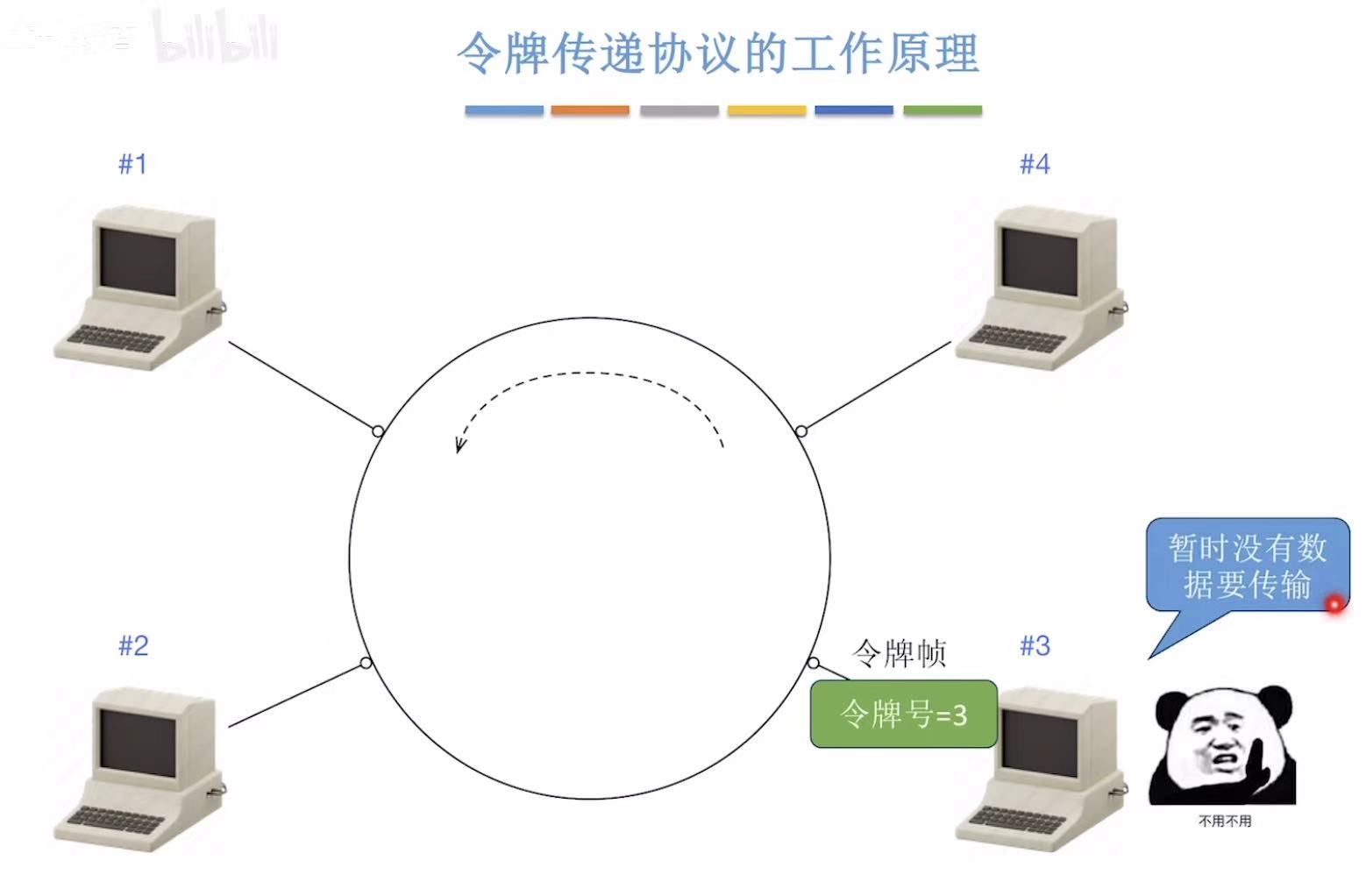 别看我放了那么多张图,简单概括就是,传给谁令牌号就是谁,令牌号对上了就变成数据帧落地成盒,然后这个令牌帧继续来回转圈儿。