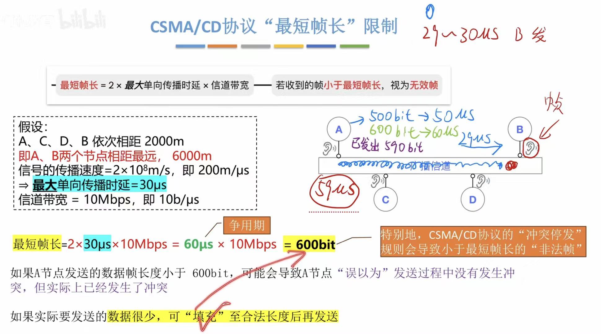 所以最最底线必须是争用期的长*带宽得出来的帧长,才可能在争用期内发现冲突。