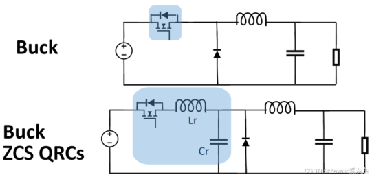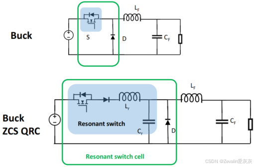 (2)以Buck电路为例,将其开关网络替换为半波ZCS谐振开关网络,即可构成Buck ZCS半波准谐振变换器。