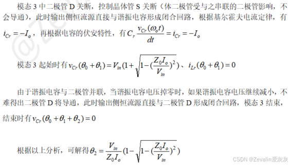 以上4个模态中,第四个模态的长度不能为负,且开关周期必须足够长,以确保电感电流和电压在开关周期结束时归零,则最小开关周期的角度长为
