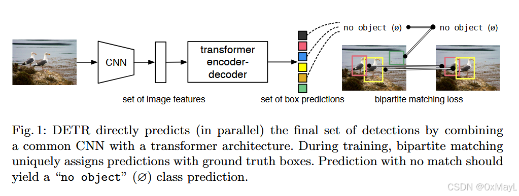 由于N的数量肯定是大于图像中真实锚框的数量和标签集M,因此作者引入了一个No Object作为新的标签集。