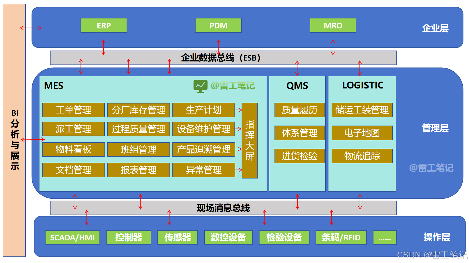 是链接企业计划层(ERP)和车间设备层(SCADA/PLC)的中间桥梁,核心任务是管生产、控流程、保质量。