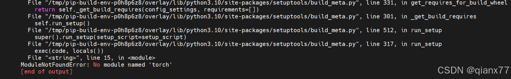 但是可能会遇到No module named 'torch'的问题,尽管自己的conda环境已经安装了torch,问题如下