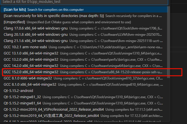 此配置是指定生成的compile_command.json文件路径, 用于clangd插件代码分析,提供代码跳转等, 生成工具选择使用Ninja 或者 MinGW Makefiles,但是make不支持c++ modules, 使用modules的话使用ninja, ninja安装参考之前环境安装部分。
