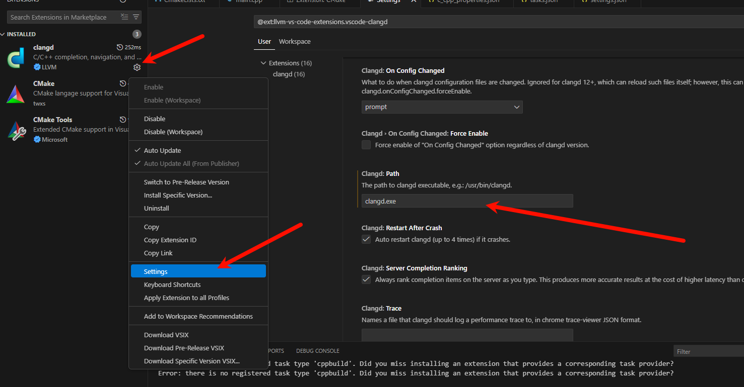 此插件安装会下载clangd服务,如果下载失败,请手动下载,并将其bin目录配置到环境变量中: