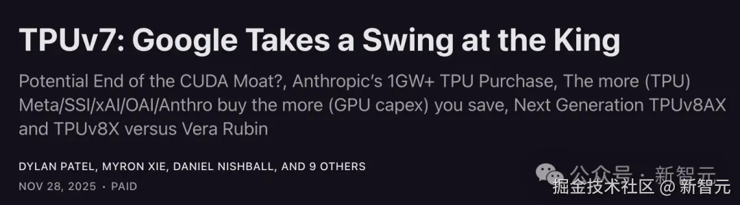 文章中,高级分析师强调:谷歌正手持 TPUv7 这把利剑,向英伟达王座发起冲锋,或将终结 CUDA 护城河。