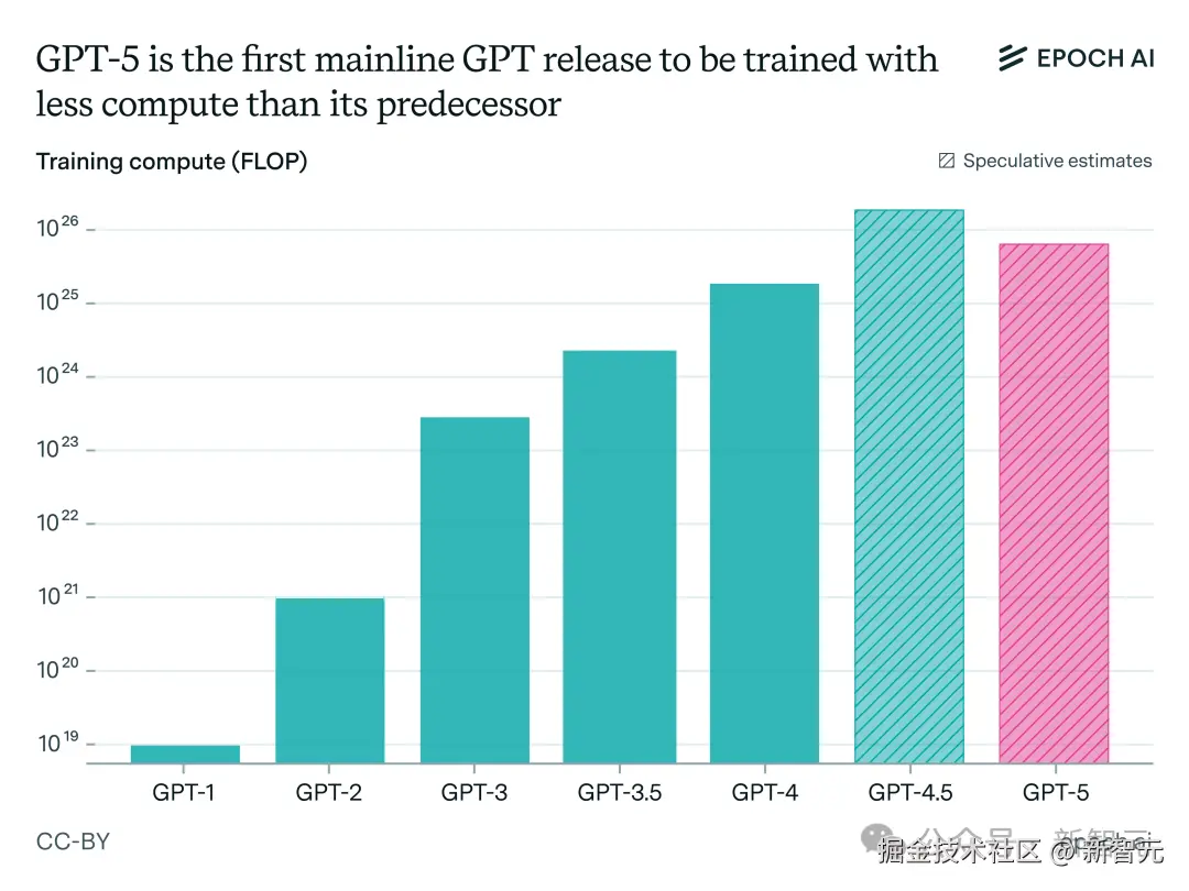 相比前代 GPT-4.5,GPT-5 很可能消耗了更少的训练算力。