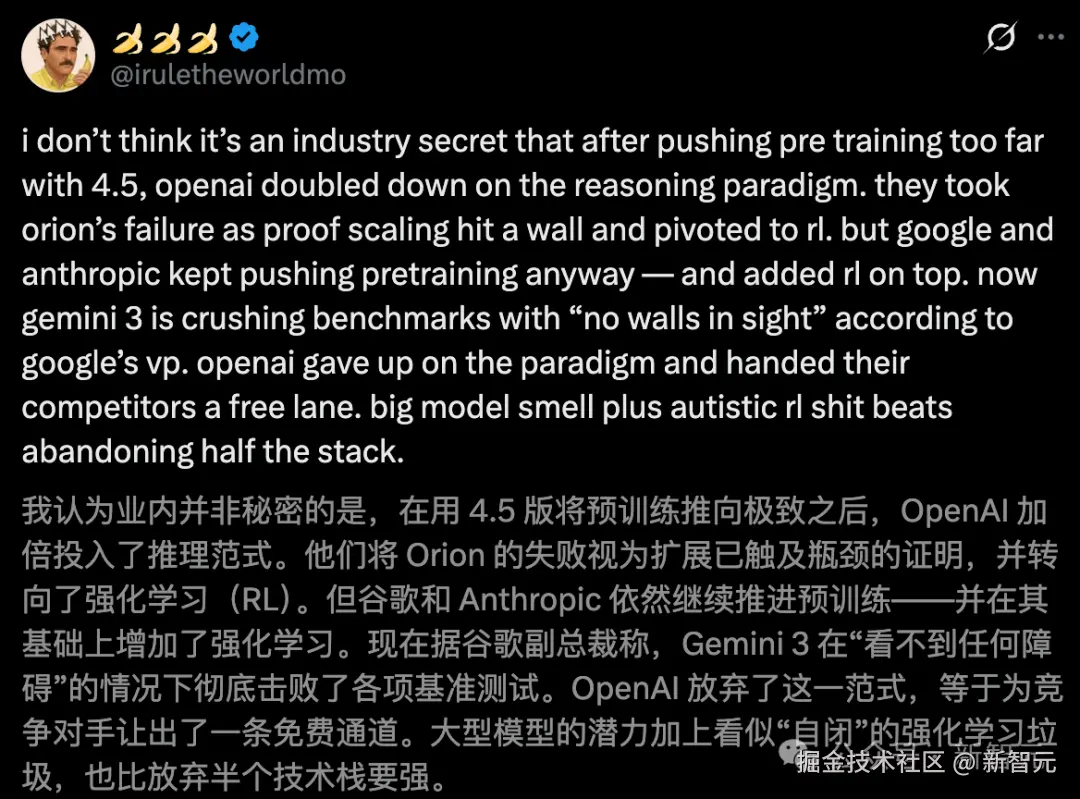 在预训练领域,谷歌取得了新突破,给 Gemini 3 带来了空前的推理深度。