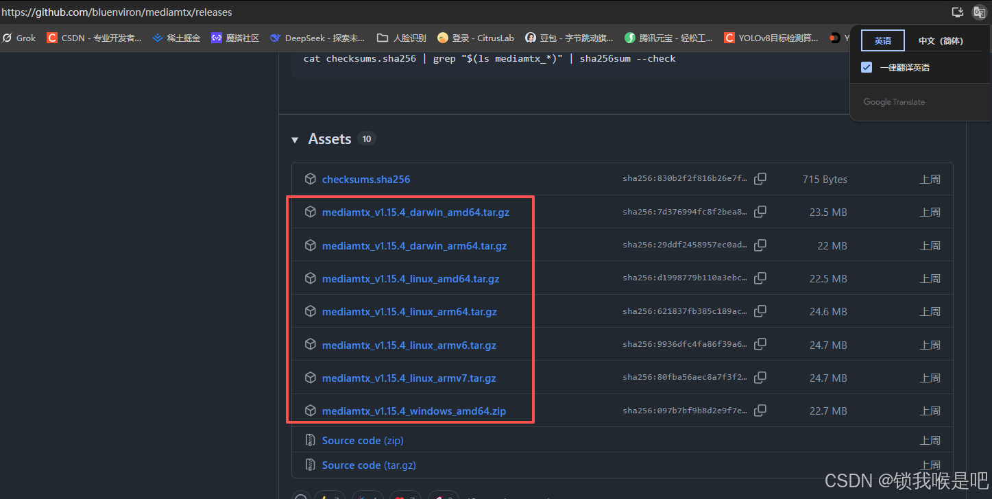 github上下载mediamtx,https://github.com/bluenviron/mediamtx/releases