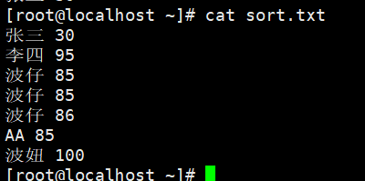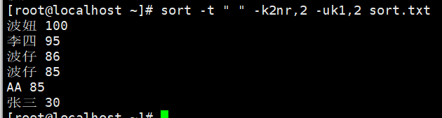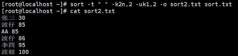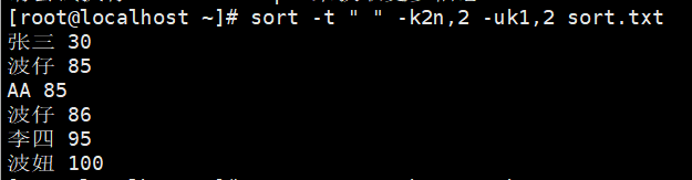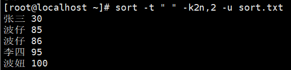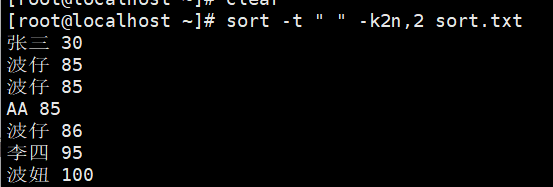 -k 2n,2 代表从第2列开始到第2列结束进行数字升序,仅对第2列排序