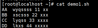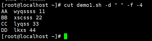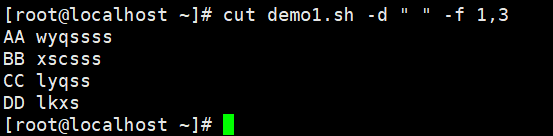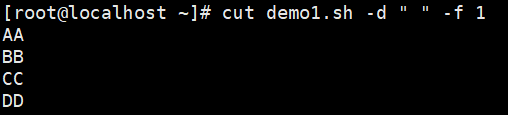 #以空格为分割,AA:第1列 ;空格:第2列;wyqssss:第3列;11:第4列;xx:第5列#提取第一列