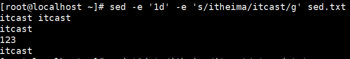 | -e | 直接在指令列模式进行sed编辑,当命令行给出多个sed指令才需要使用-e选项,一行命令可以执行多条sed |