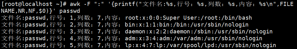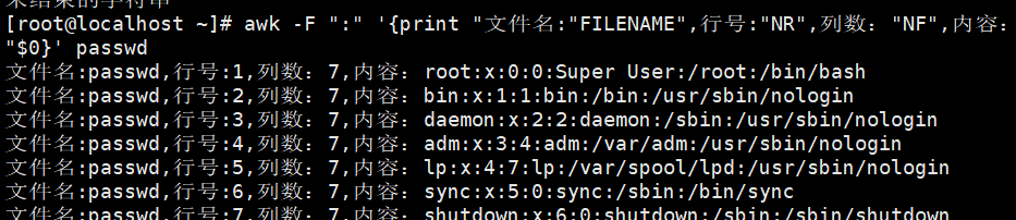 统计passwd:文件名,每行的行号,每行的列数,对应的完整行内容