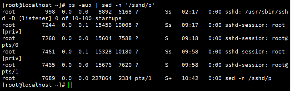 查询进程中含有sshd的进程信息命令(推荐grep)