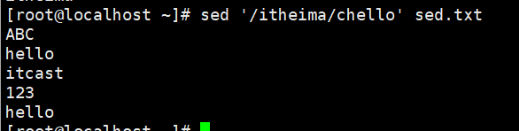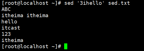 sed一次处理一行数据,将这行放入缓存(存取空间称:模式空间),然后进行处理,最后将缓存区的内容发送到终端