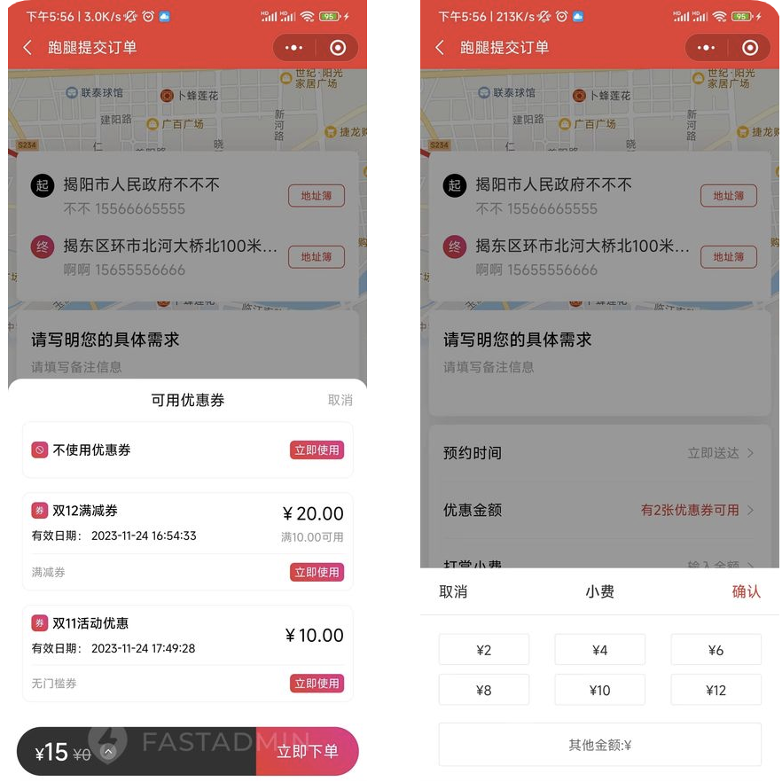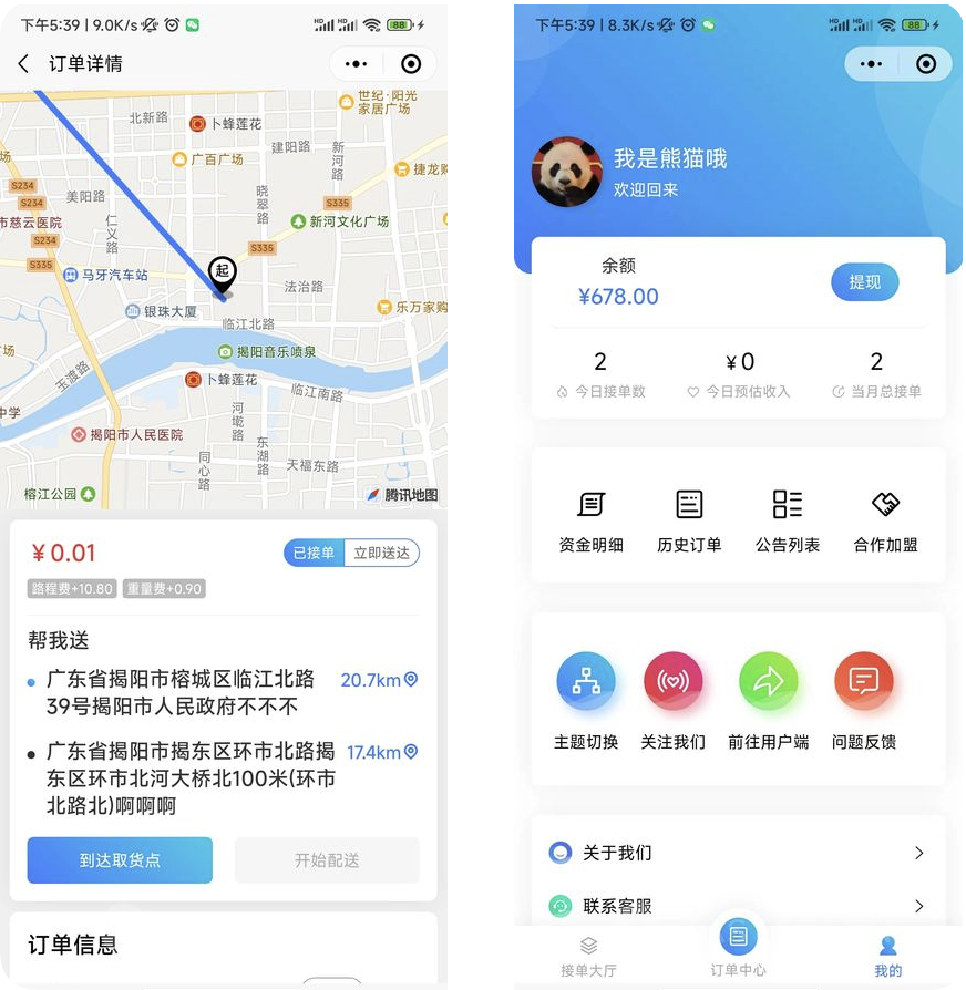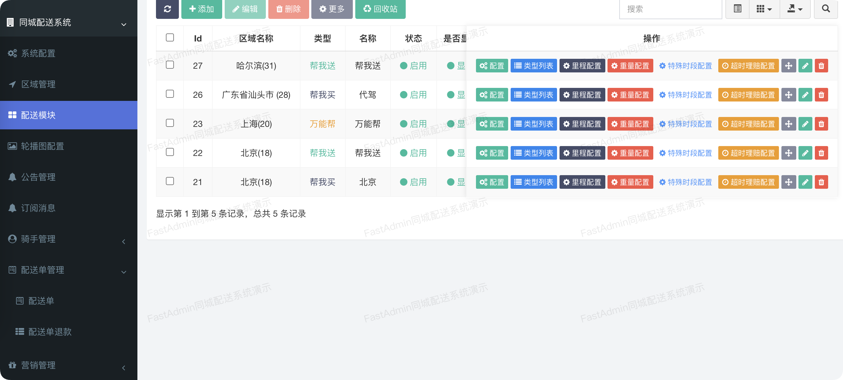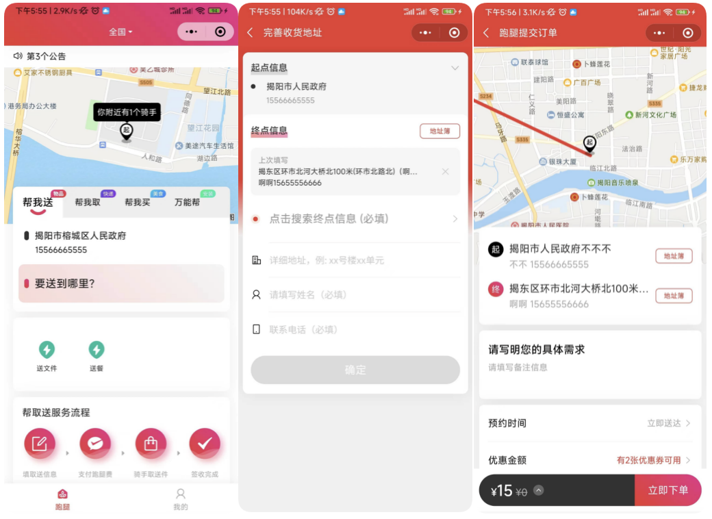 配送模块:可配置多个配送模块(帮我送、帮我取、帮我买、万能帮),针对不同模块设置不同的计费规则及功能