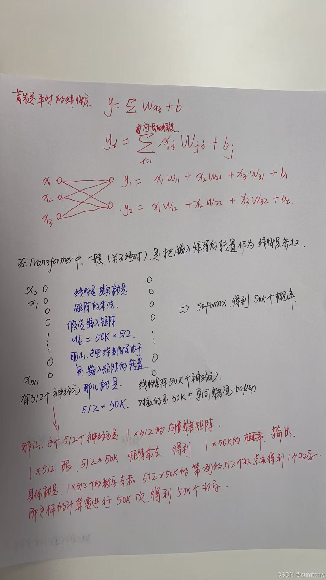 在看transformer的学习视频时,我看视频里面说了个反嵌入层,然后去查了下,结果发现竟然这个反嵌入层就是作为线性层的,于是理解了一下,然后了下面的笔记。
