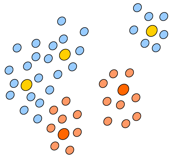 首先,需要初始化 K K K个原型向量,这些向量代表 K K K个不同的类别或簇。 - 呈现单个样本(Present a Single Example):