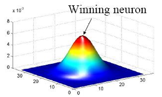 获胜神经元确定了输出层中一个拓扑邻域的空间位置,这个邻域内的神经元会被激活或"兴奋"。
