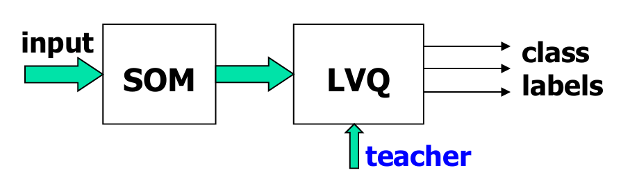 然后,这些映射后的数据被送入LVQ模块。LVQ是一个监督学习模块,它使用类别信息(class labels)来调整Voronoi向量(即码向量)的位置。