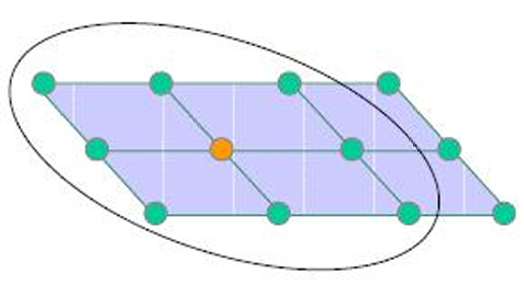 下图展示了一个二维网络,其中每个绿色点代表一个神经元。