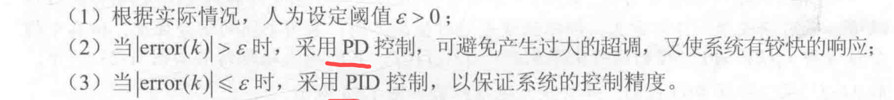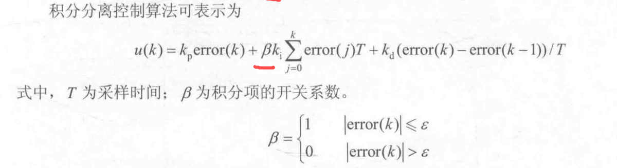 积分分离的基本思路:当控制量与设定值偏差较大时,取消积分作用,以避免由于积分作用使系统稳定性降低,超调量变大;当控制量接近给定值时,引入积分控制,消除静差,提高控制精度。