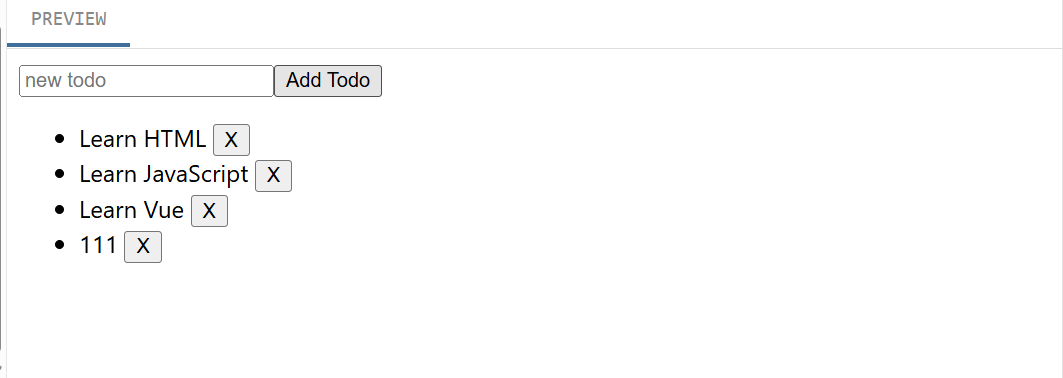 <input v-model="newTodo" required placeholder="new todo">