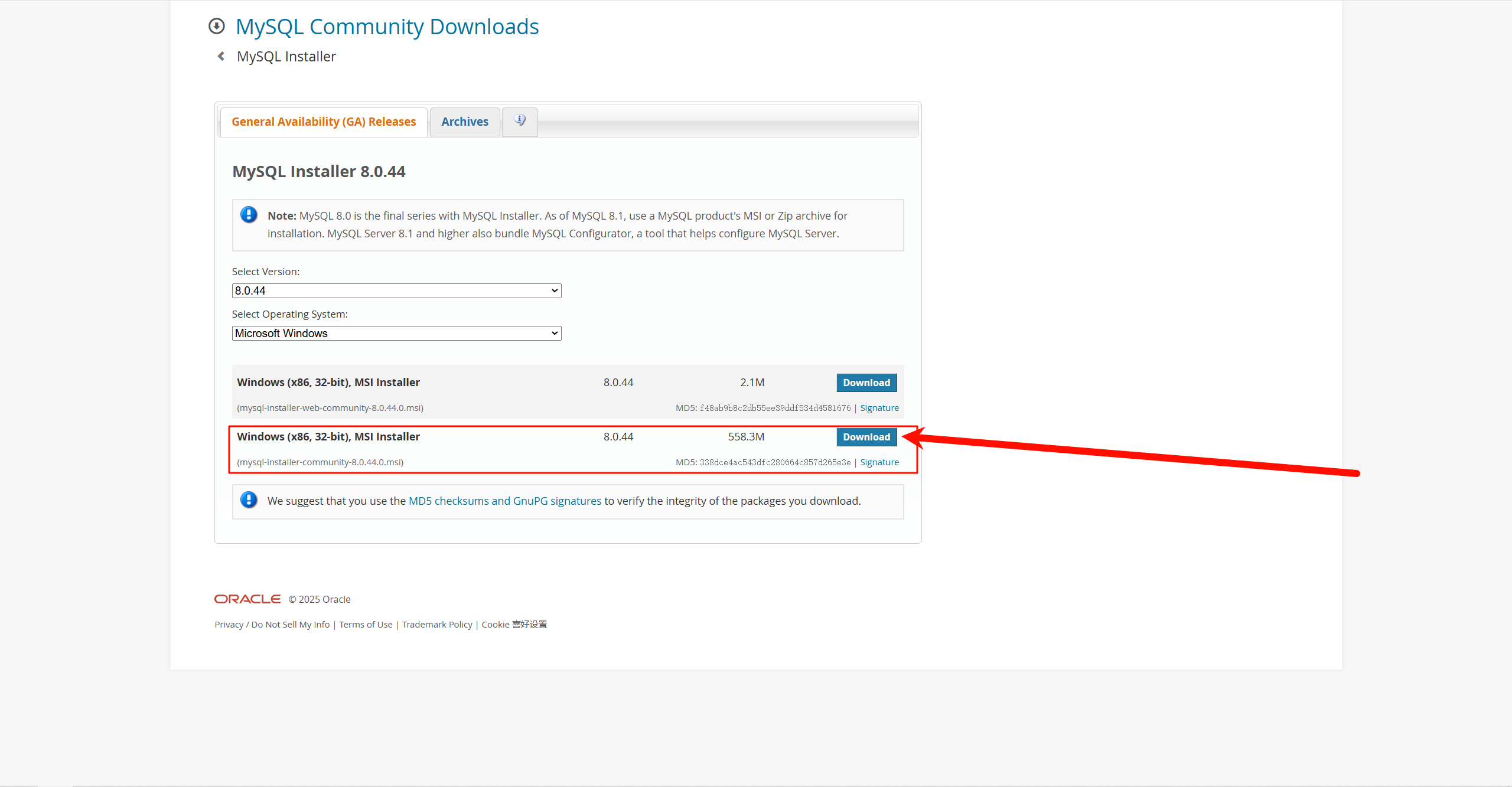 点击MySQL Installer for Windows