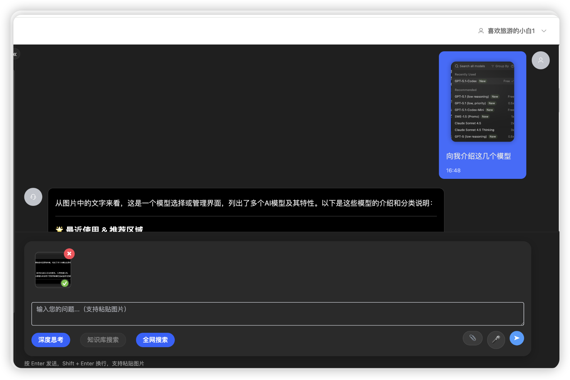 log.info("选择模型: {} ({}) - 上下文: images={}, rag={}, webSearch={}, useThinking={}",