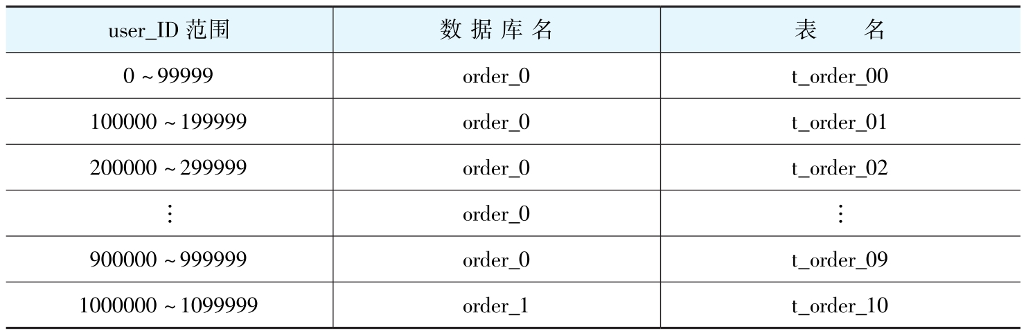 **1)根据范围分片:**比如user_ID是自增型数字,把user_ID按照每100万份分为一个库,每10万份分为一个表的形式进行分片