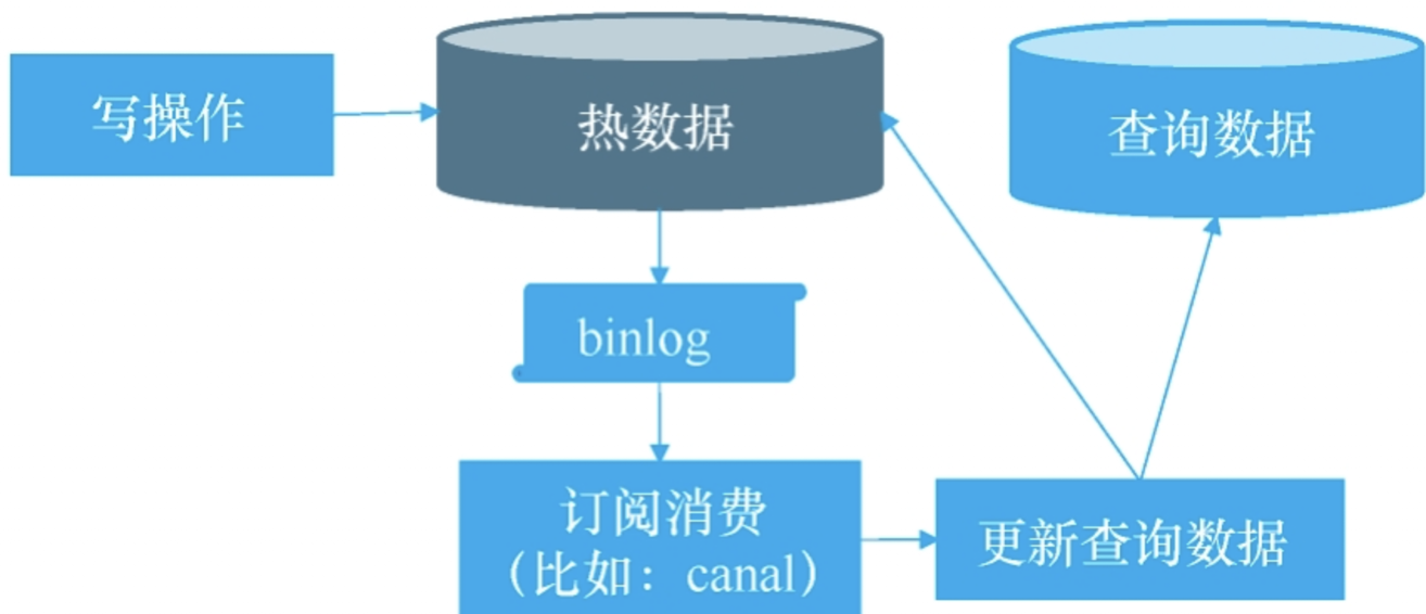 讲解查询分离时提过一个方案,就是监控数据库变更日志,将数据库变更的事件变成消息,存到消息系统,然后有个消费者订阅消息,再将变动的数据同步到查询数据库。