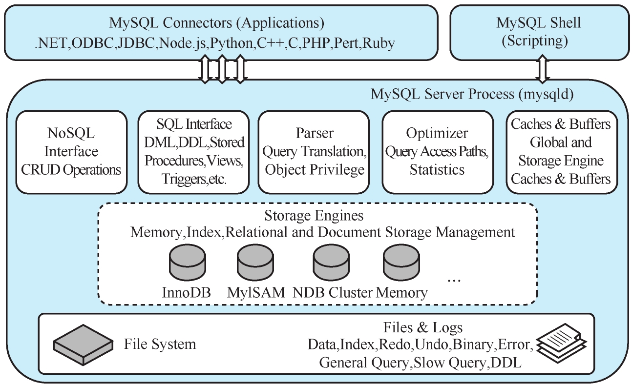 下图为MySQL官方架构图,MySQL的分区技术主要体现在图中的文件存储层File System,它可以将一张表的不同行存放在不同的存储文件中。