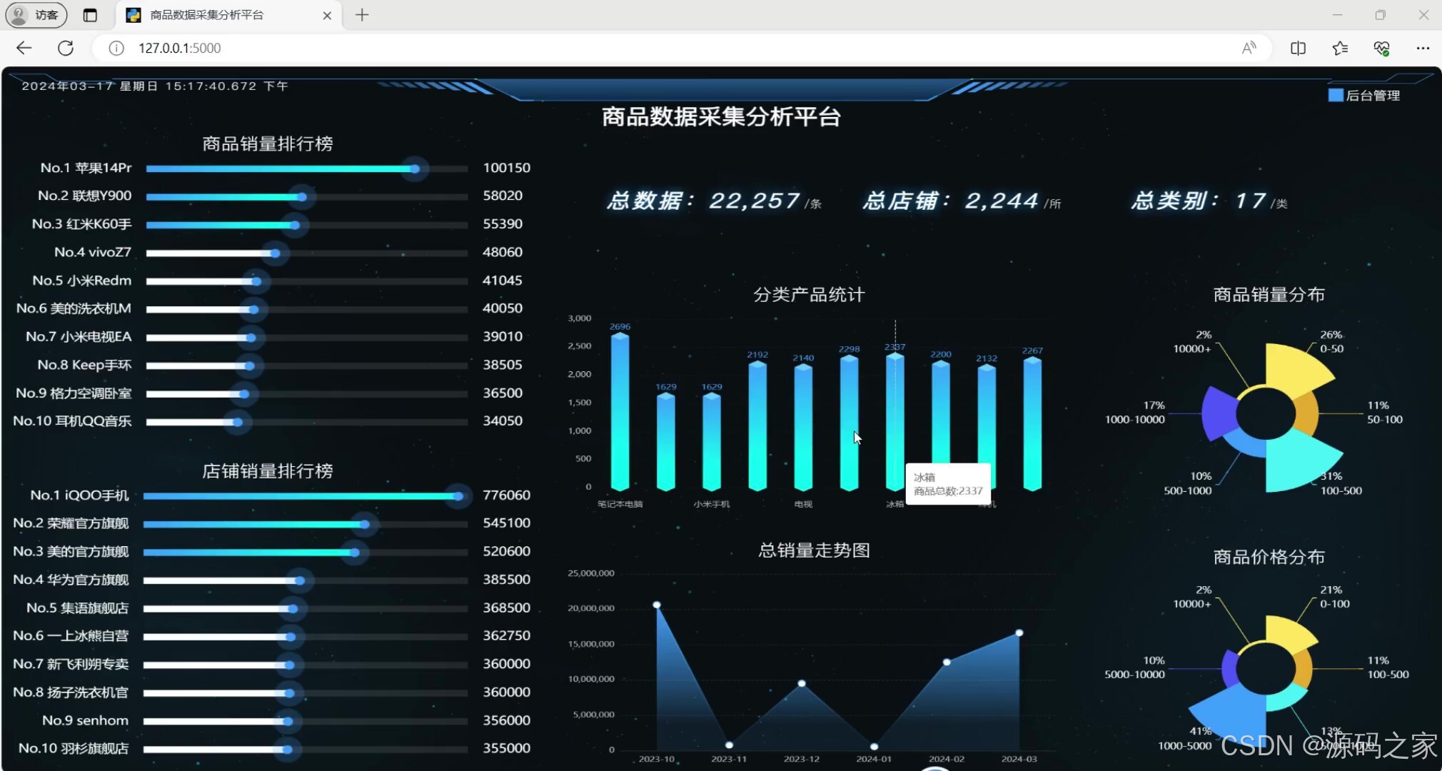 - 商品数据可视化大屏(全平台商品销量、价格、品类分布等核心数据总览)