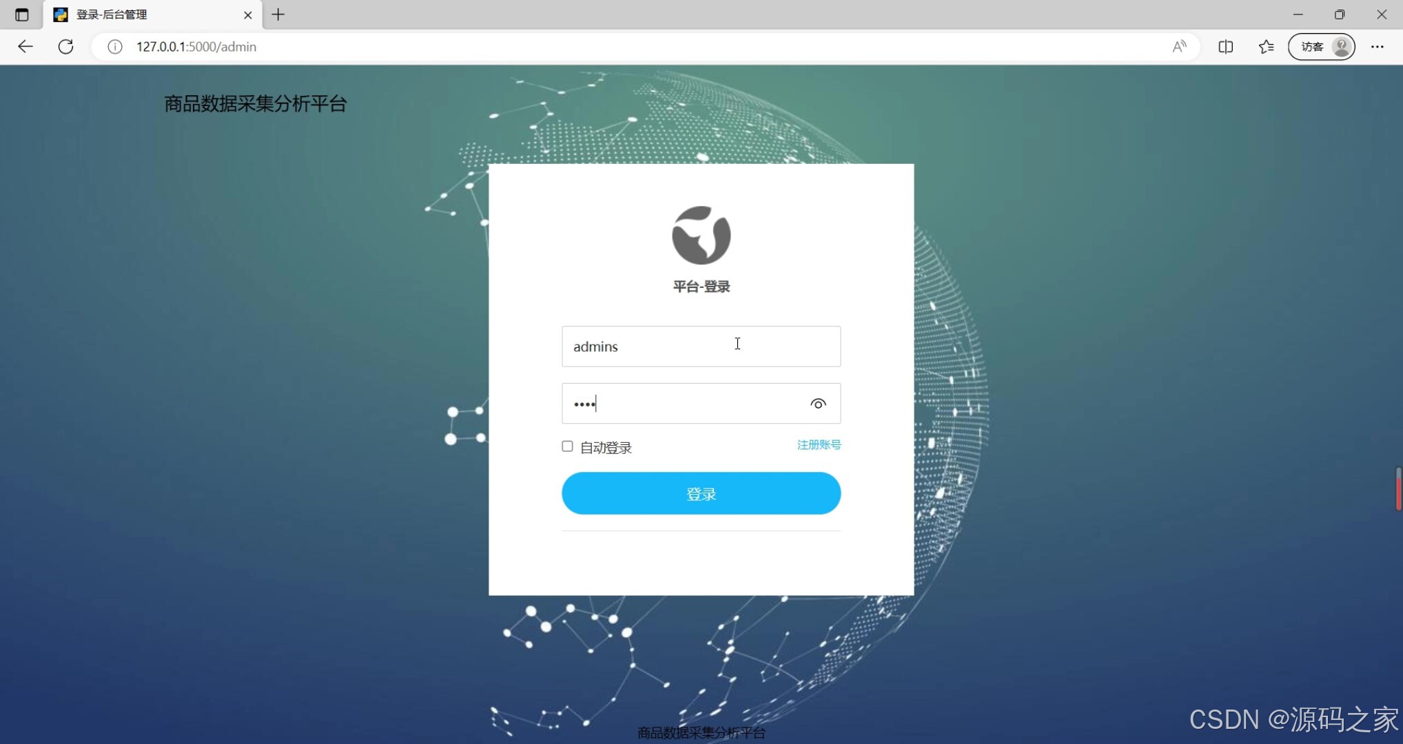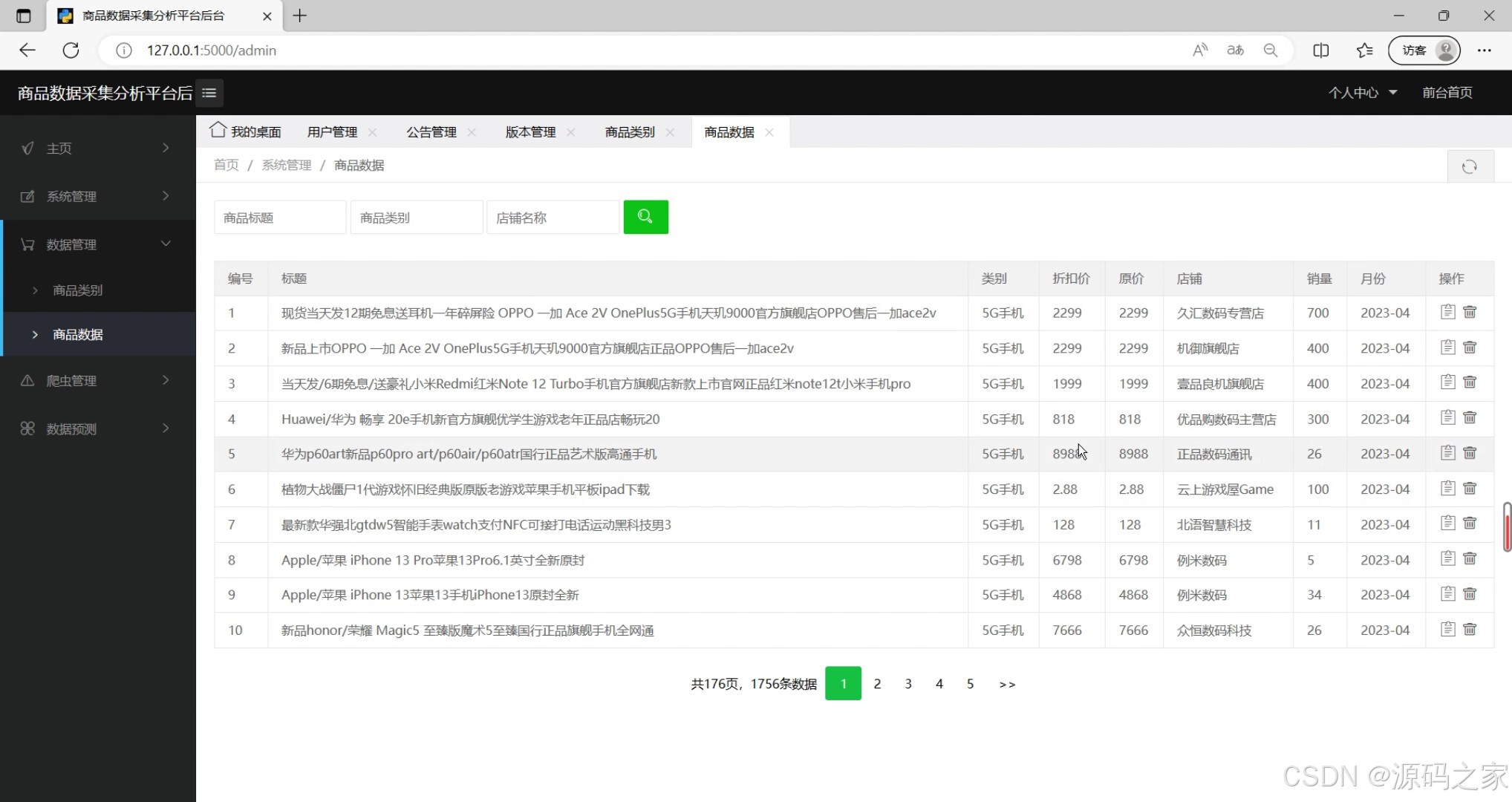 后台管理页面(系统核心功能入口,含数据管理、用户管理等模块导航)