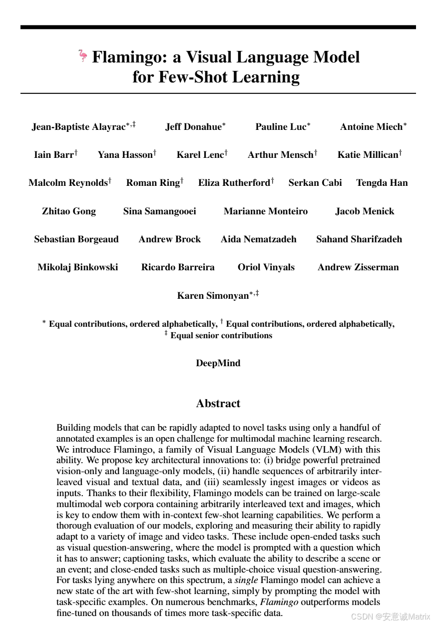 《Flamingo: a Visual Language Model for Few-Shot Learning》