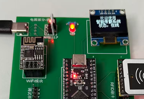 在签到时间后,用已录入的卡去刷卡,能够成功打卡但在OLED屏显示签到迟到,如下: