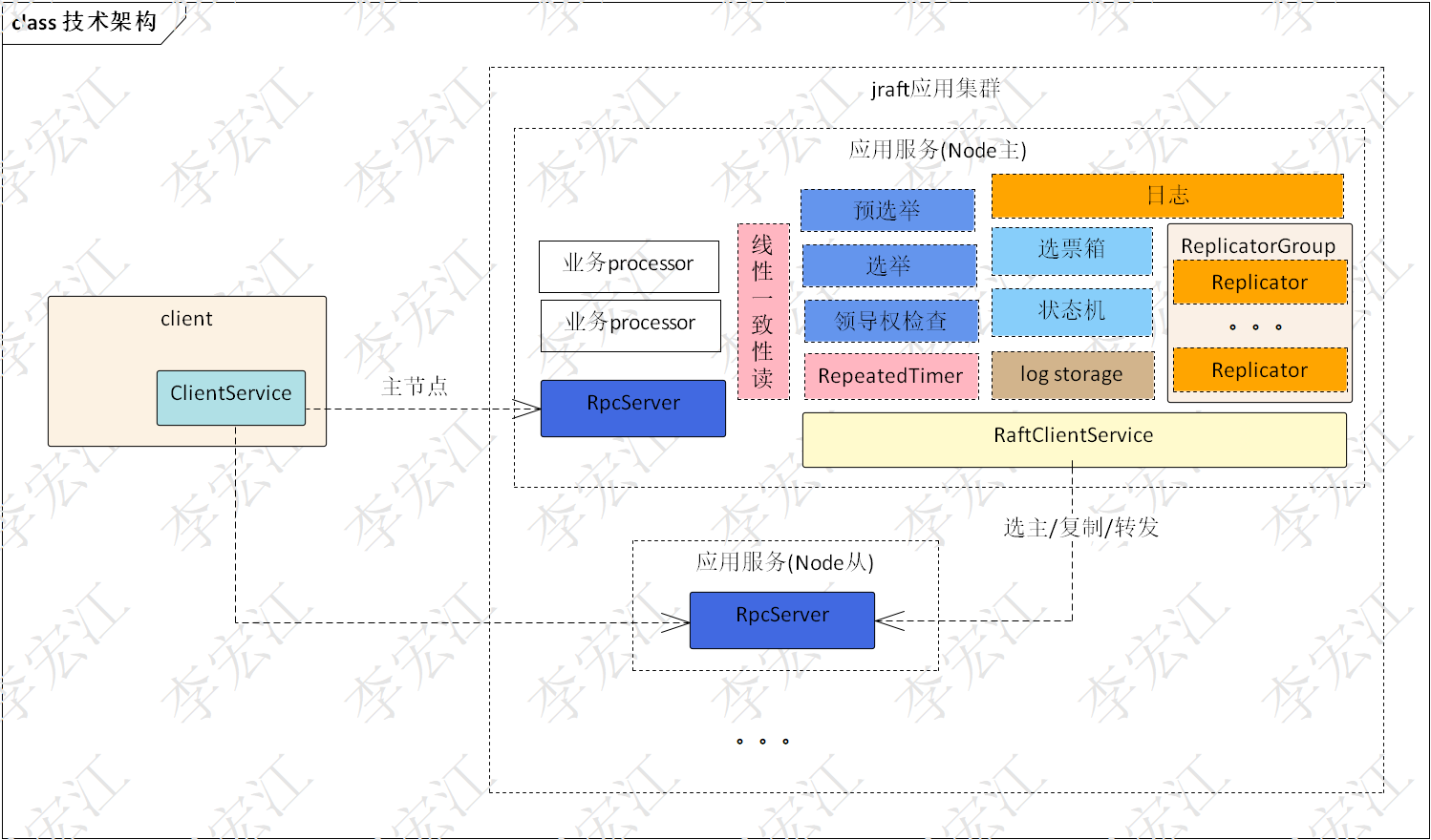 选举 主节点选举是jraft的核心功能,主节点是分布式节点协调的关键,日志写入主节点完成