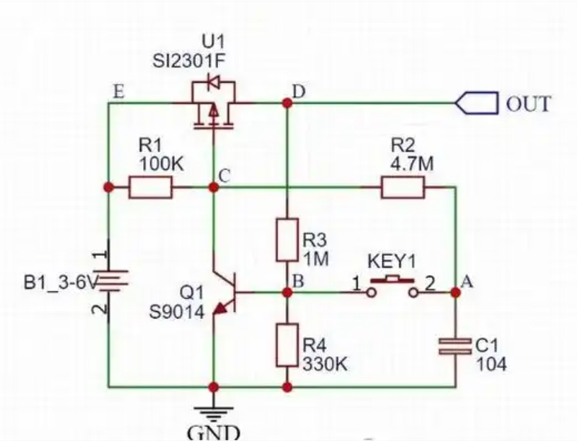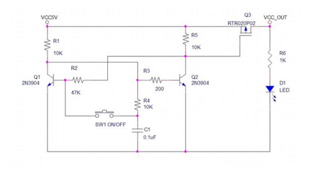 整个电路的核心是 "锁定" 。要开机时:短按按键,触发一个高电平(或低电平)信号,这个信号能"锁定"系统电源,使其持续供电。