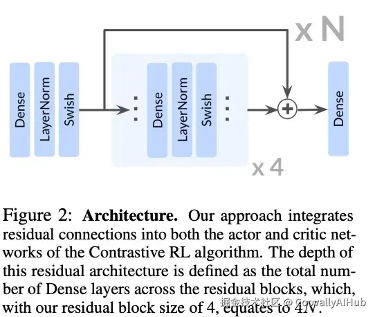 - 网络架构中的深度扩展:虽然许多先前的RL工作主要关注增加网络宽度,但他们通常在扩展深度时报告有限甚至负回报。相比之下,我们的方法解锁了沿深度轴扩展的能力,产生的性能改进超过了仅扩展宽度所带来的改进。