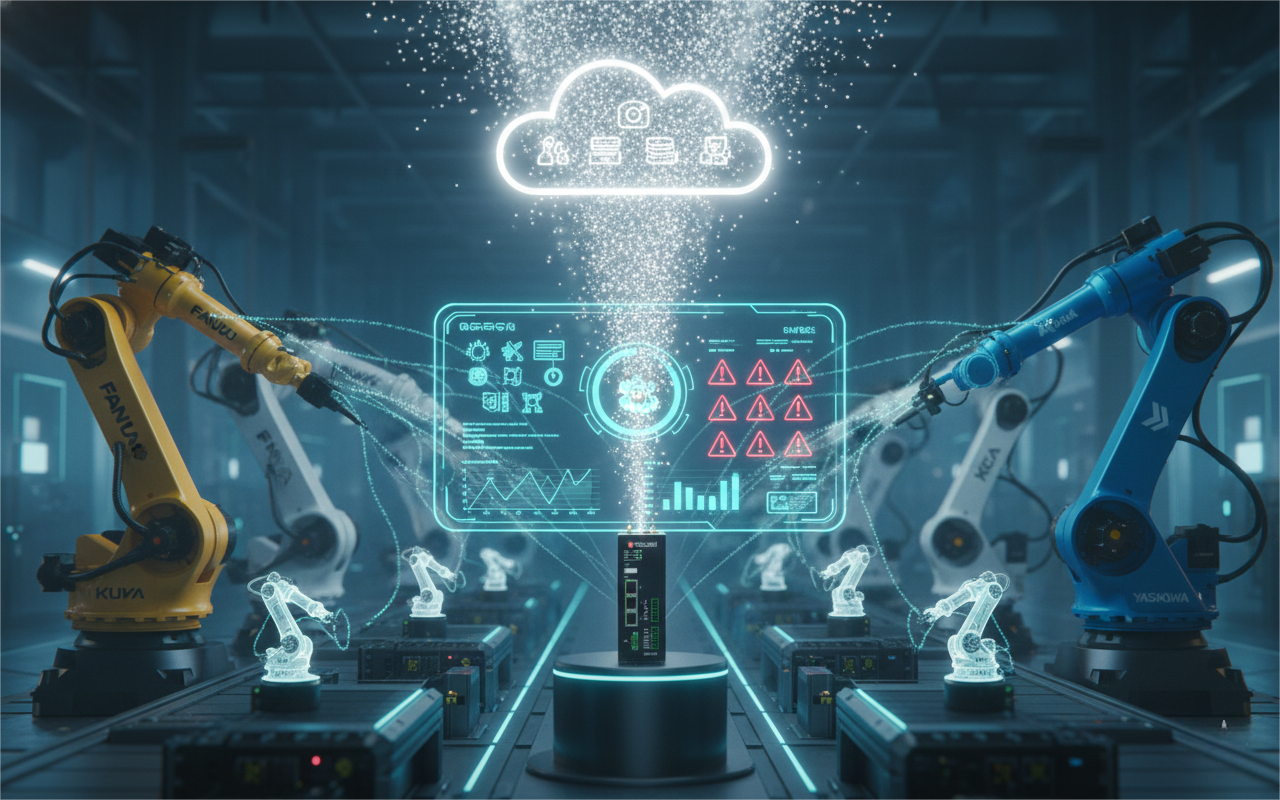 导语 : 作为开发者,对接工业机器人协议是一件痛苦的事。FANUC的FOCAS库依赖Windows DLL,安川的UDP报文需要自己封装,库卡的XML配置繁琐。要把这些异构数据统一集成到MQTT云平台,工作量巨大。本文将介绍一种"降维打击"的方案:利用边缘网关 的协议转换能力,将复杂的机器人私有协议转化为标准的MQTT流,让开发者专注于业务逻辑。