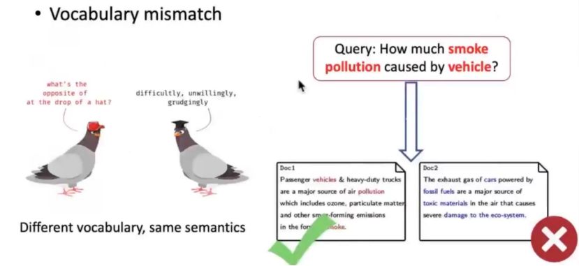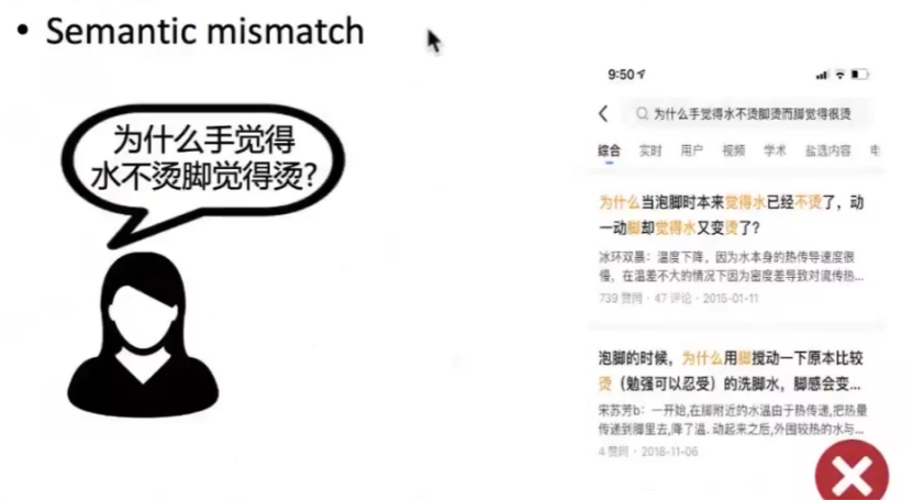2,语义失配。文档和词汇存在很高的词汇匹配率,但是两者间含义完全不同。