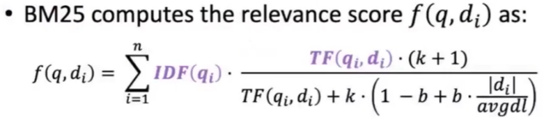 1,K,b为分数公式的超参数,|di|是di每篇文章的长度,avgdl为整个文档库中文档的平均文档长度。